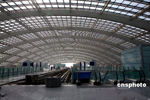 据中国新闻网消息:2007年11月6日,北京首都机场轻轨“3号航站楼站”接近尾声,该车站位于首都机场3号航站楼前的交通中心内,旅客可通过扶梯直达3号航站楼。机场线全长28.1公里,自西向东共设置了4座车站,起点站——“东直门站”与地铁2号线和13号线互为换乘站,另外还包括三元桥站(与10号线互为换乘站)和“2号航站楼站”(位于2号航站楼与停车楼之间的绿地及现状道路之下,旅客可经通道直达2号航站楼)。该工程预计2008年4月建成,7月1日开始载客试运营。届时,机场轻轨最高运营速度100公里/小时,东直门至首都机场运行时间为16分钟。